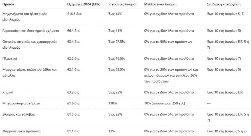 Πόσο πέφτουν οι δασμοί, ποια ελληνικά προϊόντα αφορά, δείτε πίνακες