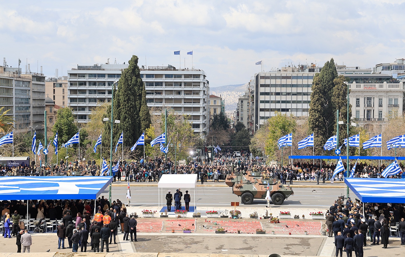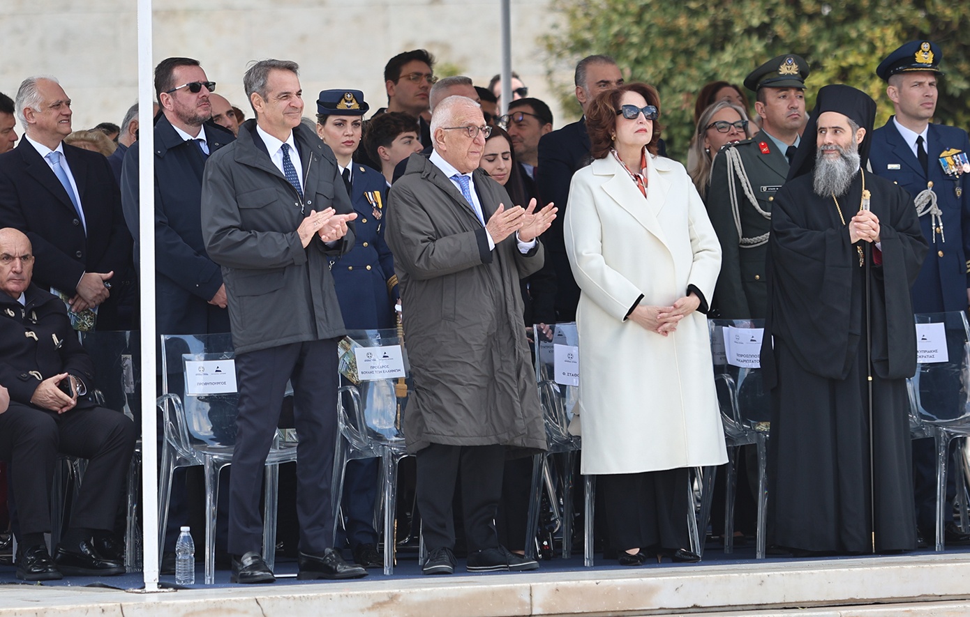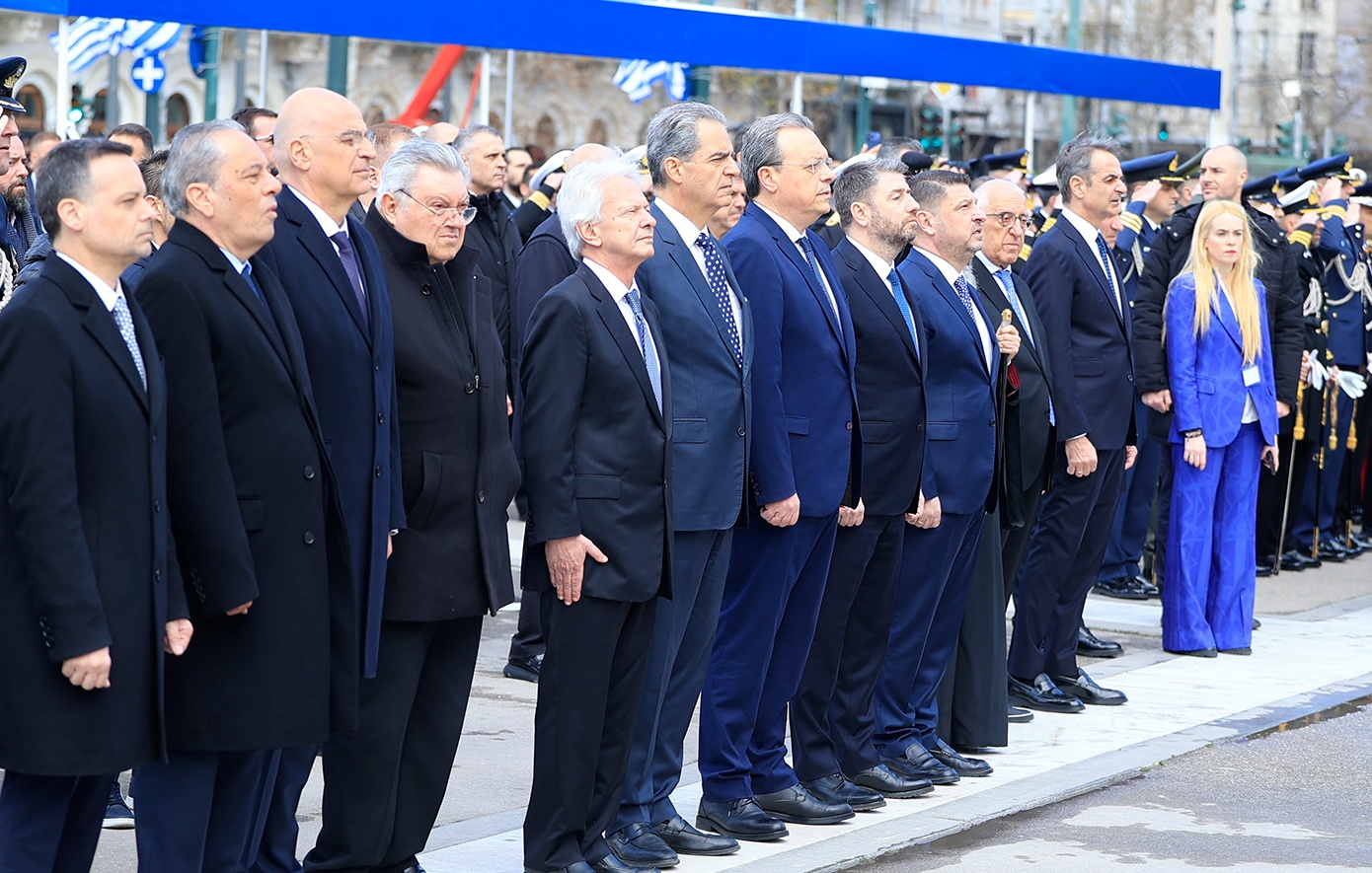 - Οι εορταστικές εκδηλώσεις ξεκίνησαν επίσημα στις 10:01 με 21 χαιρετιστήριους κανονιοβολισμούς από τον Λυκαβηττό, ενώ στις 10:55 ο Πρόεδρος της Δημοκρατίας, Κωνσταντίνος Τασούλας, κατέθεσε στεφάνι στο Μνημείο του Αγνώστου Στρατιώτη.