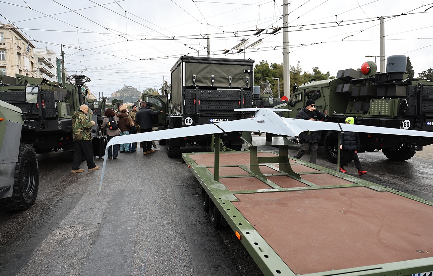 Στην παρέλαση παρουσιάστηκε μια σειρά από σύγχρονα οπλικά συστήματα που αναβαθμίζουν τις επιχειρησιακές δυνατότητες των Ενόπλων Δυνάμεων. Ανάμεσα σε αυτά, ξεχωρίζει το αντι-drone συστήματος «Κένταυρος», το πρώτο προϊόν συνεργασίας του Ελληνικού Κέντρου Αμυντικής Καινοτομίας (ΕΛΚΑΚ) με την Ελληνική Αεροπορική Βιομηχανία (ΕΑΒ), το οποίο έχει ήδη εγκατασταθεί σε μονάδες του Πολεμικού Ναυτικού που επιχειρούν στην περιοχή της Ερυθράς Θάλασσας και στην Κύπρο.